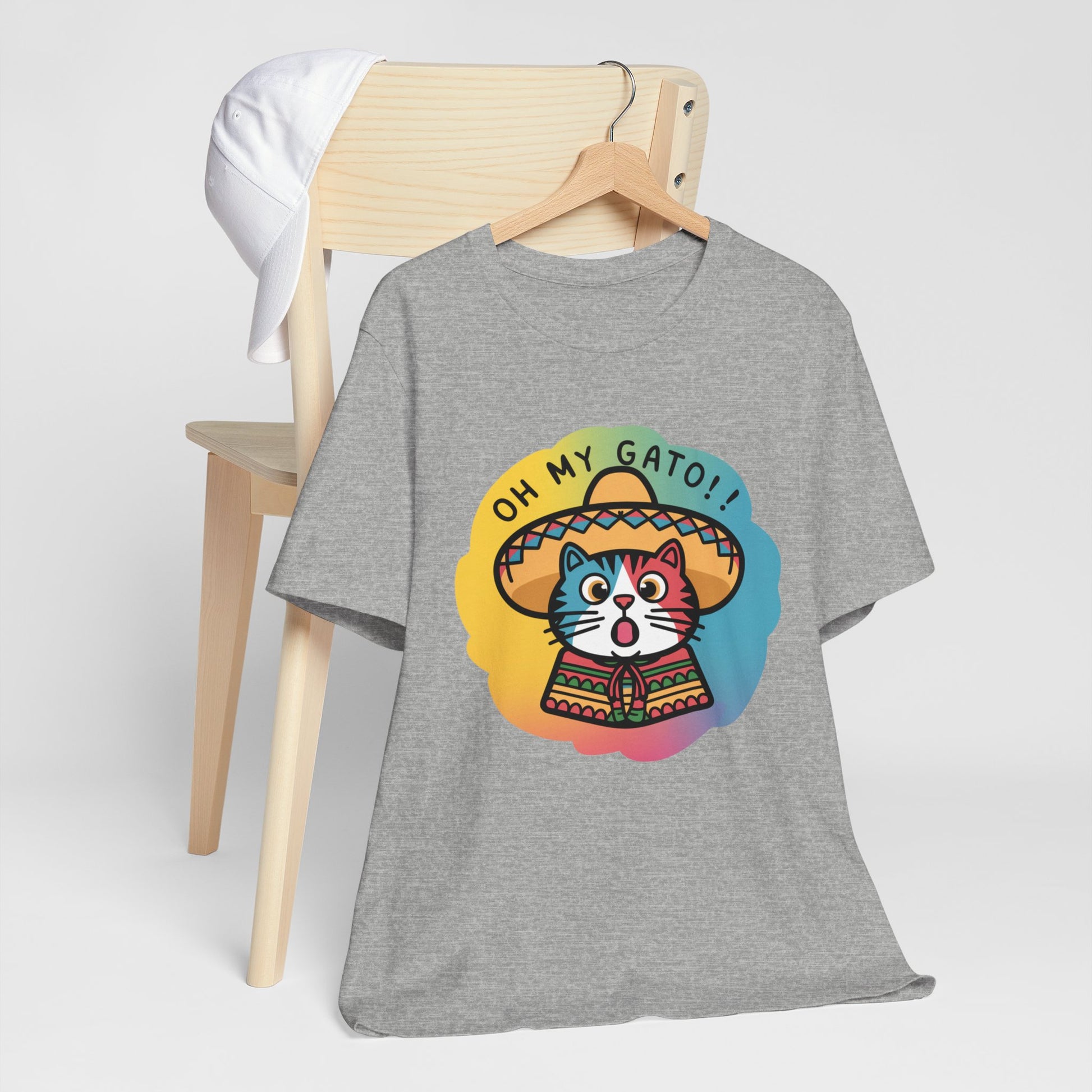 Brighten your day with the "Oh My Gato" T-shirt, featuring a humorous and colorful design perfect for cat lovers. This witty Spanglish phrase and playful sombrero-clad feline make a fun gift for anyone who loves pets and a good laugh.