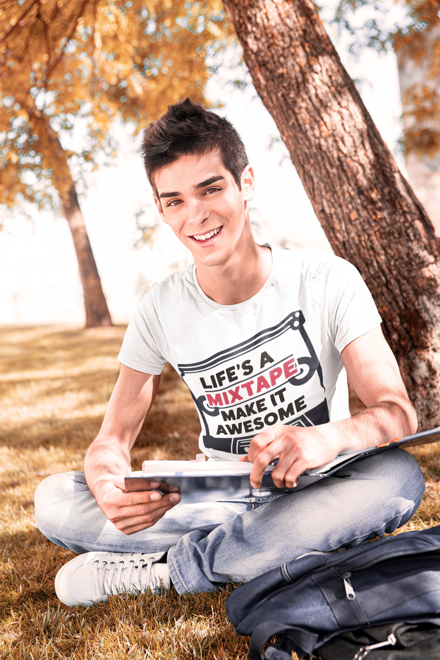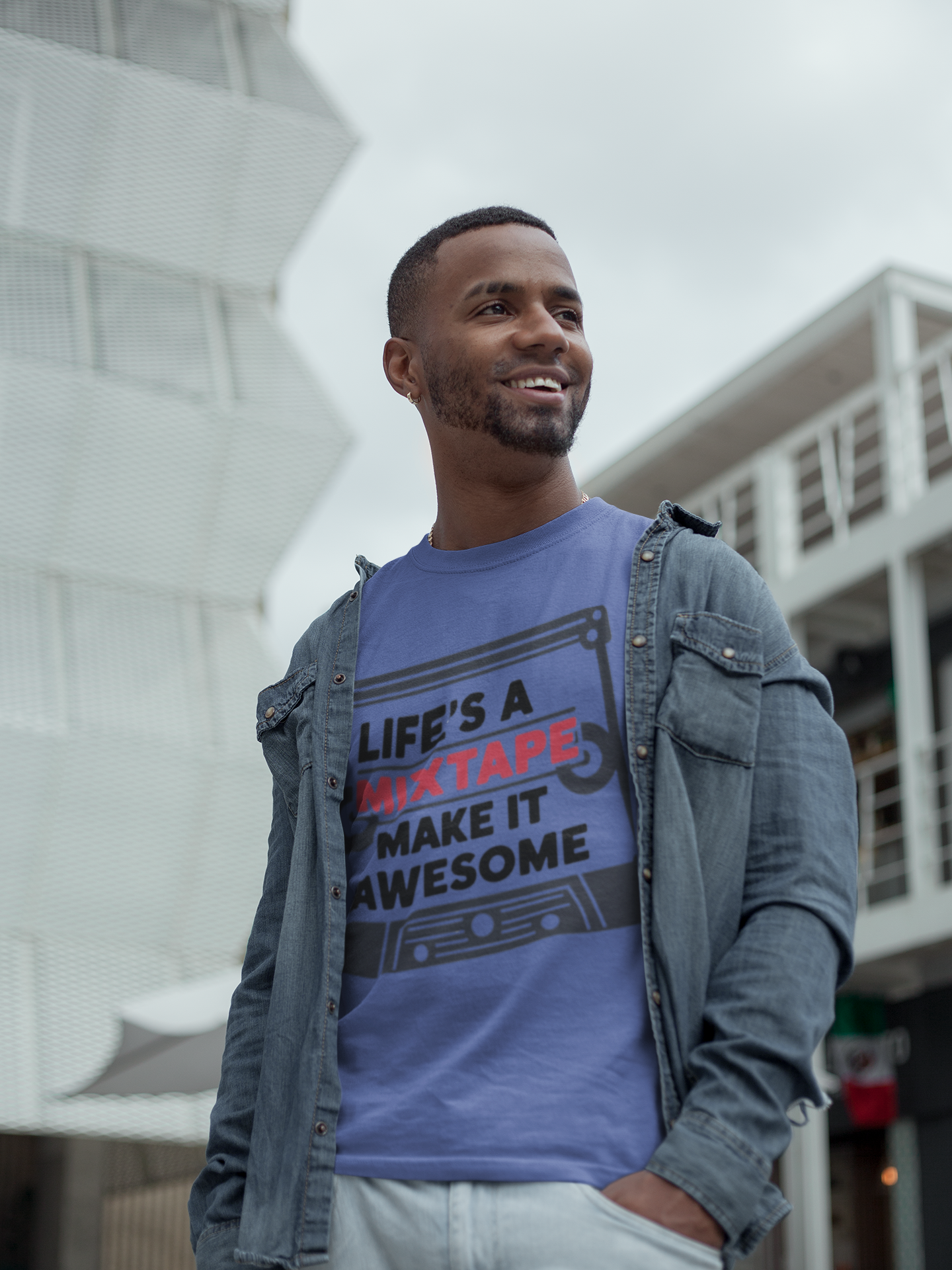 Celebrate the nostalgia of the 1980s with this retro-inspired design featuring the bold phrase "Life's a Mixtape, Make it Awesome." This eye-catching typography is perfect for music lovers and those who appreciate classic pop culture vibes.