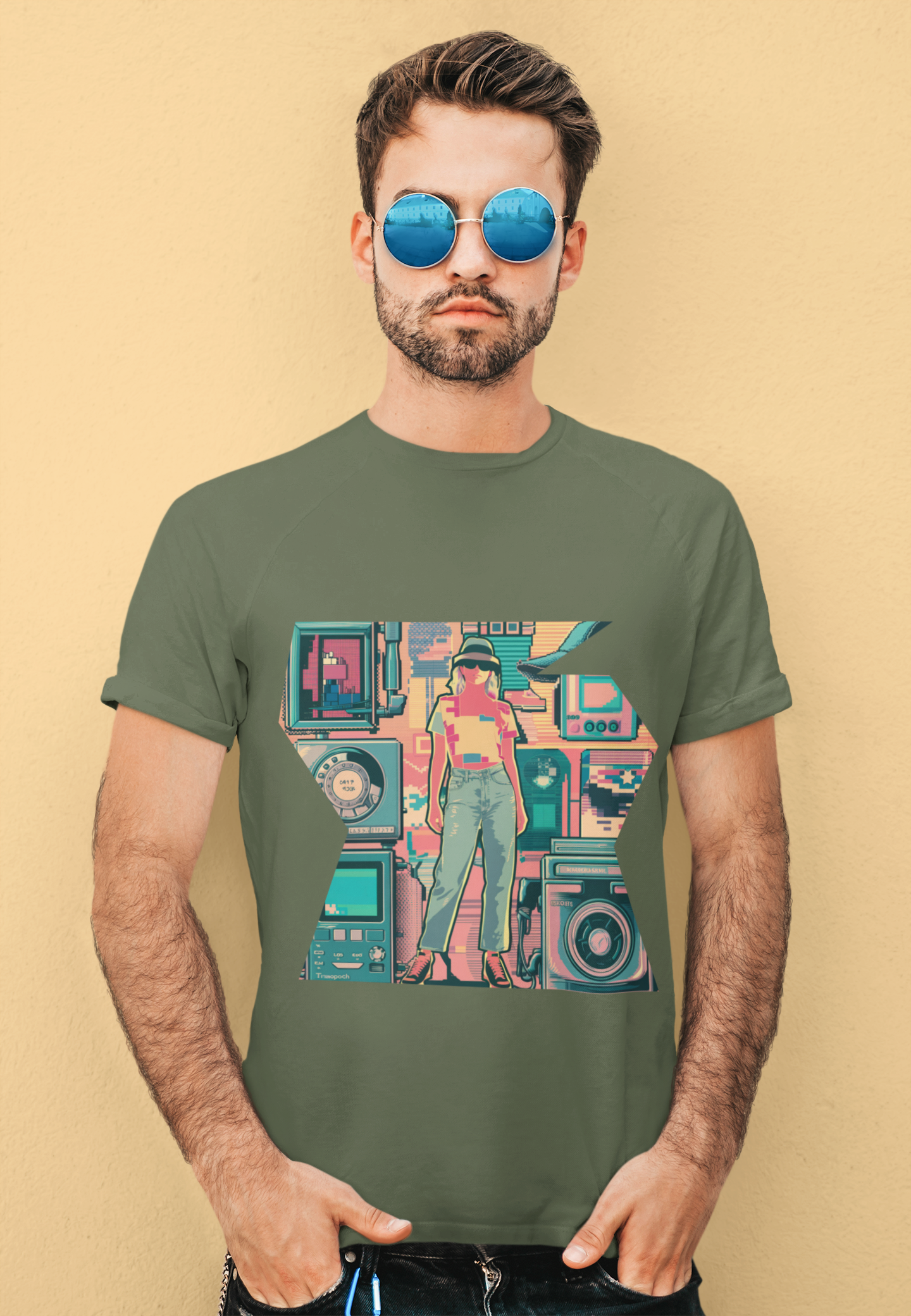 Step back into the vibrant 2000s with this "Retro 2000" t-shirt, perfect for fans of nostalgic and colorful designs. Featuring a geometric and abstracted woman in a pixelated, glitchy style, this shirt captures the essence of old-school digital art and retro electronic vibes.