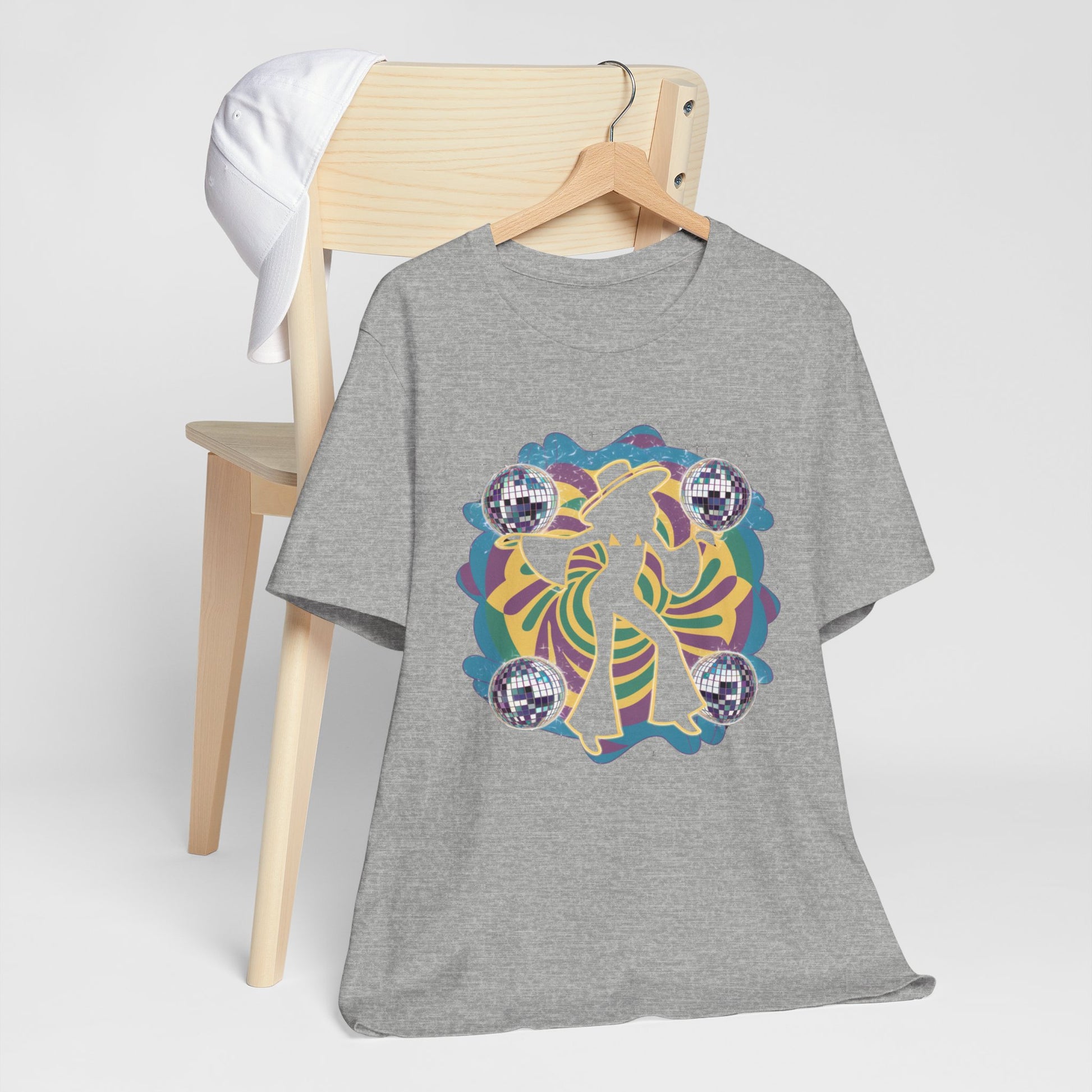This retro disco lady design features a vibrant, colorful pop art silhouette that captures the funky, groovy essence of the seventies nightlife. Perfect for party celebrations and disco fashion enthusiasts.