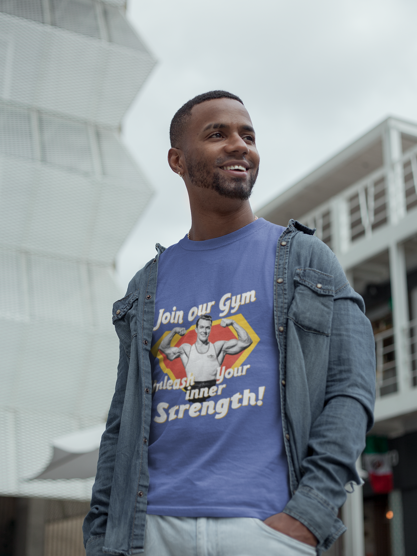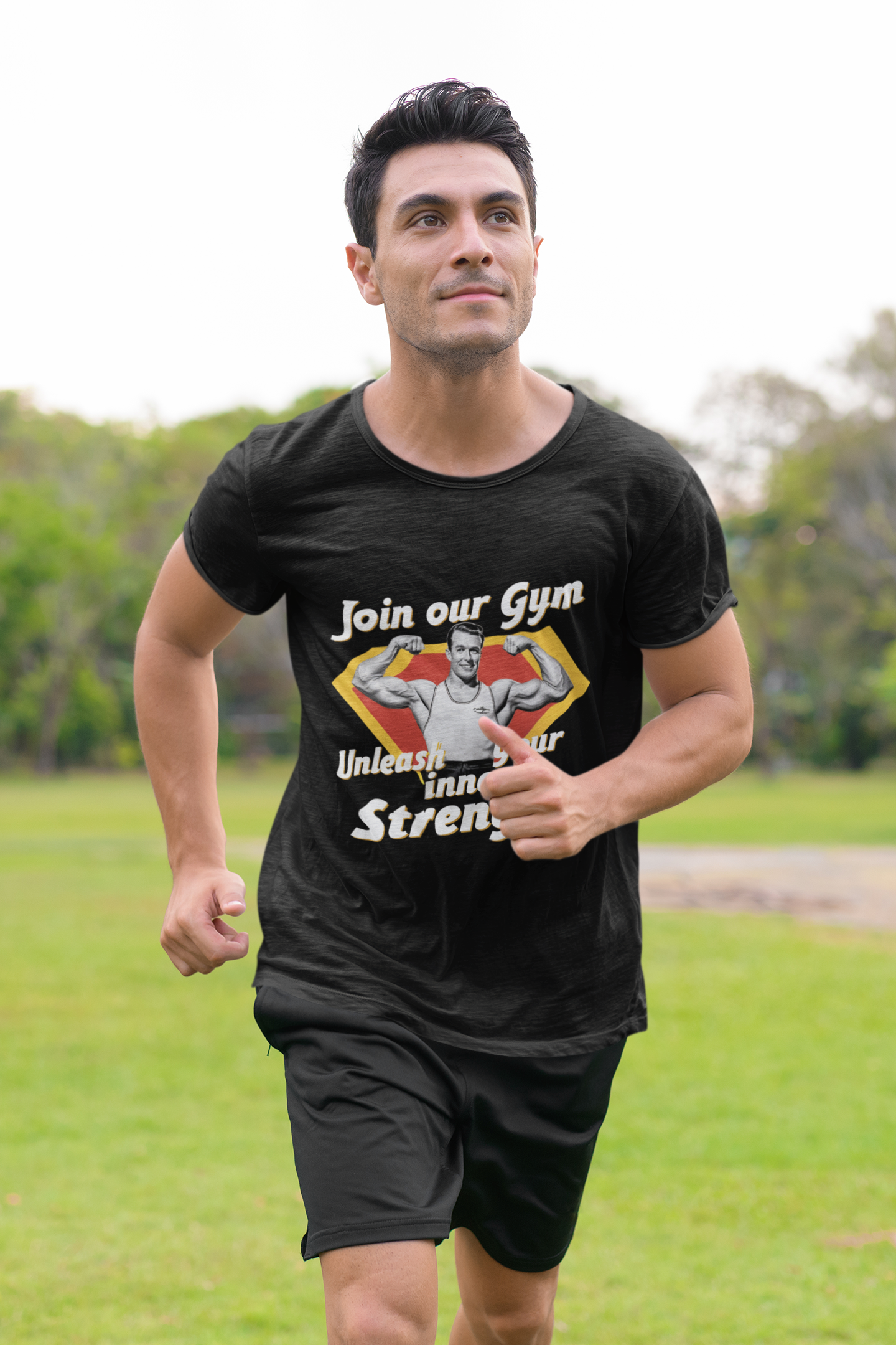 Embrace the old-school charm with this vintage fitness t-shirt featuring a retro advertisement. Perfect gift for gym rats, dads, and bodybuilding enthusiasts. Celebrate strength and health with a touch of whimsy and hip style.